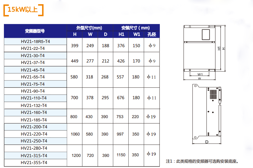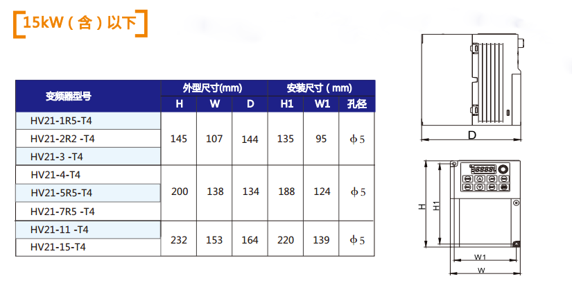 HV21系列變頻器適用于功率范圍1.5kW-355kW的400V三相異步電機。可廣泛應(yīng)用于標(biāo)準(zhǔn)風(fēng)機和泵類控制系統(tǒng)。符合IEC/EN61800-3,IEC/EN61000-4,IEC/EN60721-3,IEC/EN61800-5-1等國際標(biāo)準(zhǔn)。